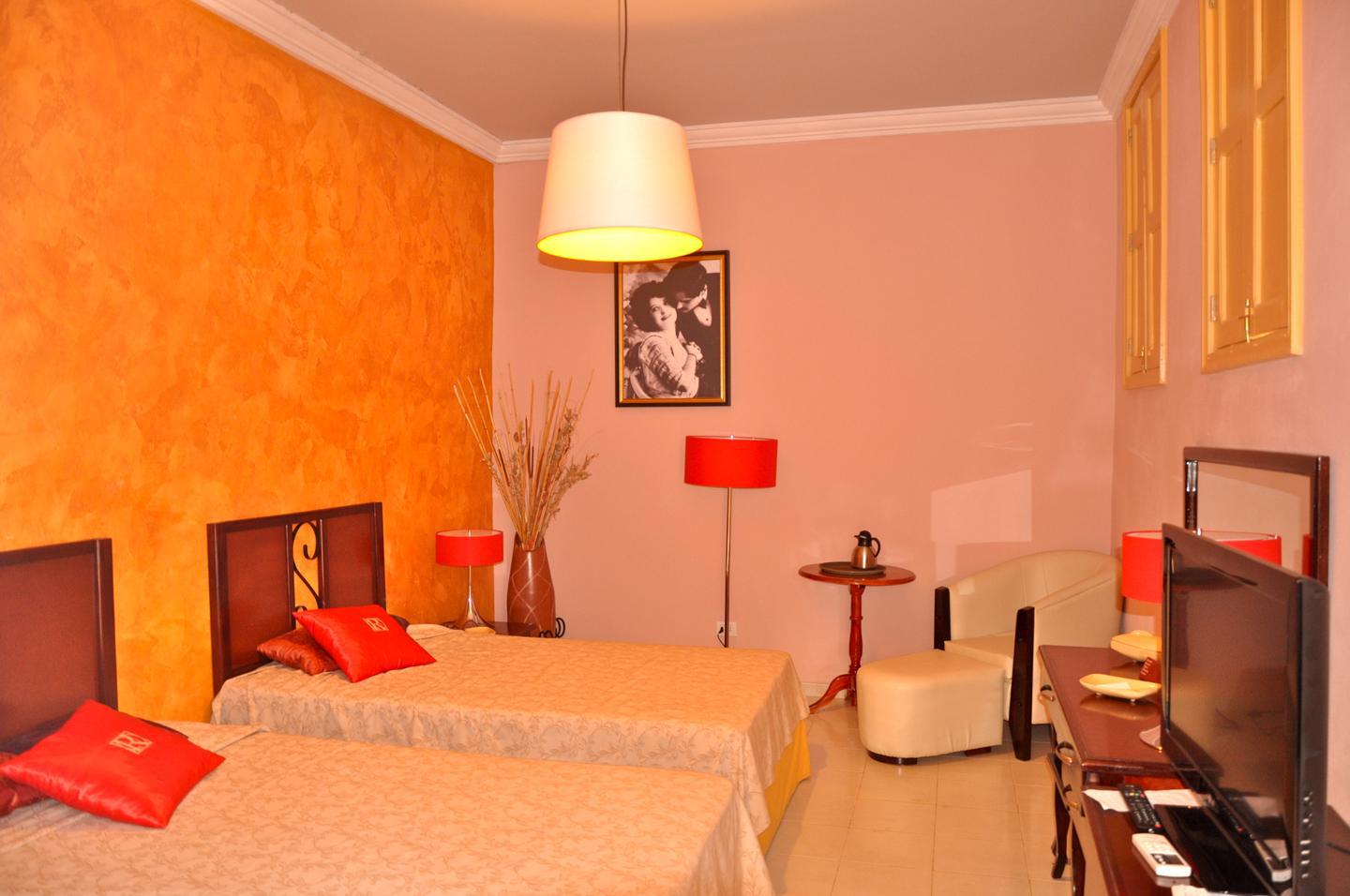 Toutes de type standard, les chambres de l'hôtel se distinguent par leurs hauts plafonds et leurs sols en carrelages coloniaux, ajoutant une touche d'élégance et de fraîcheur. Leur disposition contribue à maintenir les chambres à une température agréable, même par temps chaud. Certaines offrent une vue sur le patio intérieur, tandis que celles orientées vers le sud bénéficient de hautes fenêtres à la française, s'ouvrant sur des balcons avec vue sur la place Céspedes.