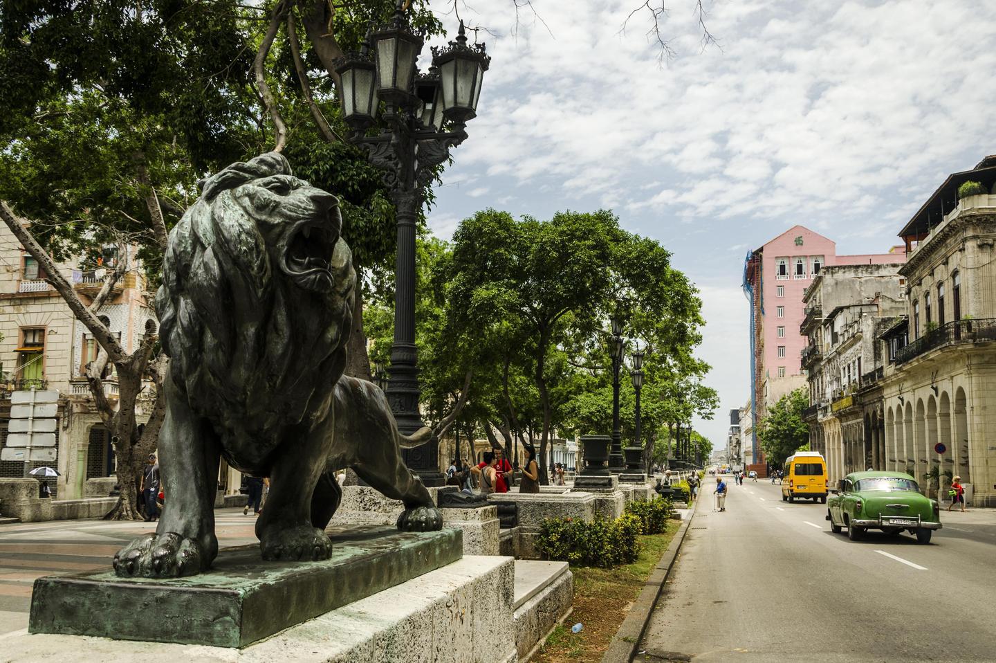 Le Paseo del Prado est un témoin important de l’histoire de La Havane. À l’origine une allée en terre bordée d’arbres, elle a été aménagée au début du XXe siècle avec une allée centrale en terrazzo, des bancs en pierre et marbre, des lampadaires et des arbustes de laurier qui offrent de l’ombre.