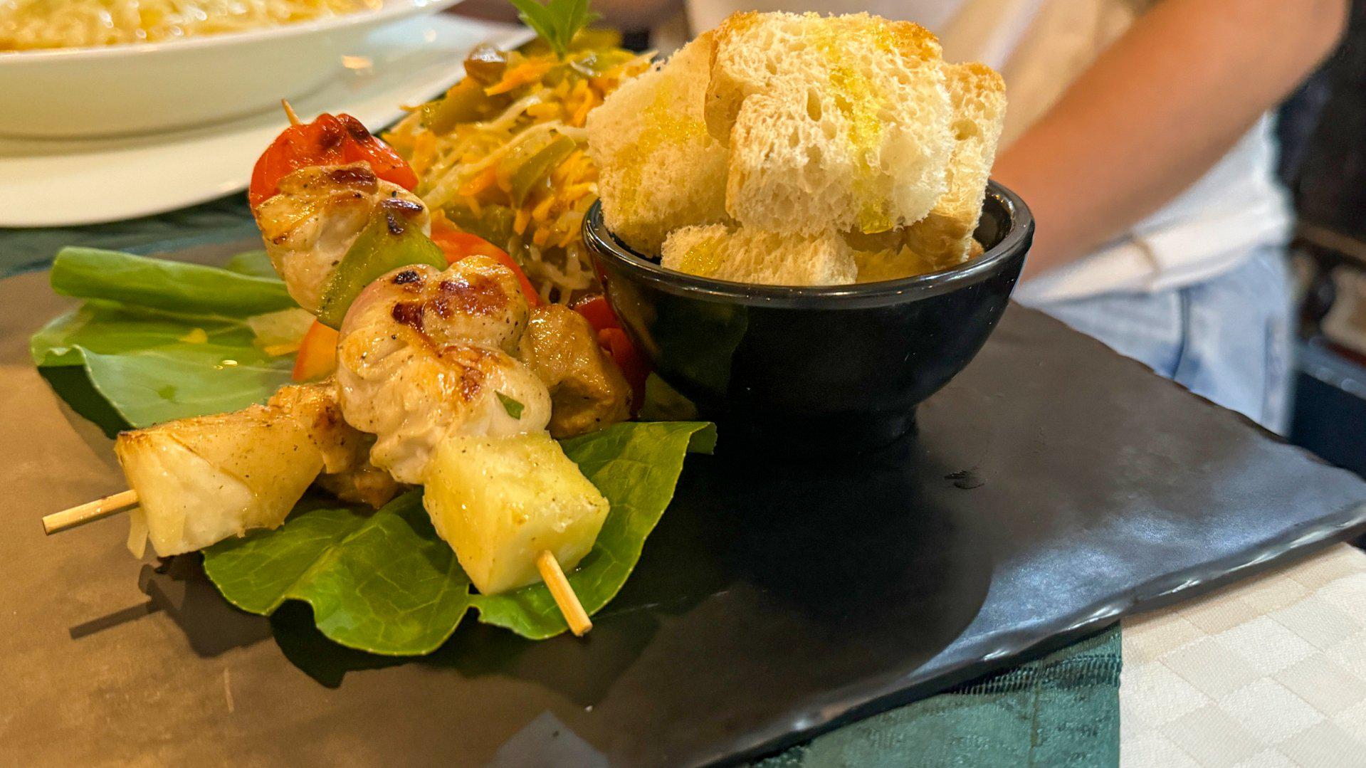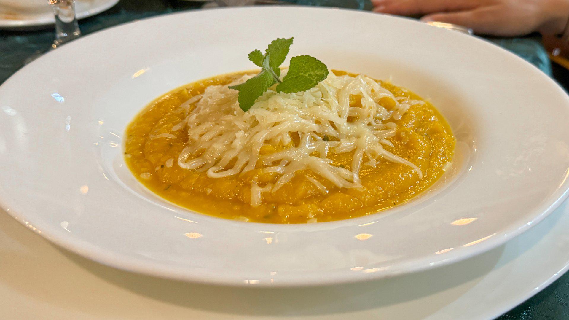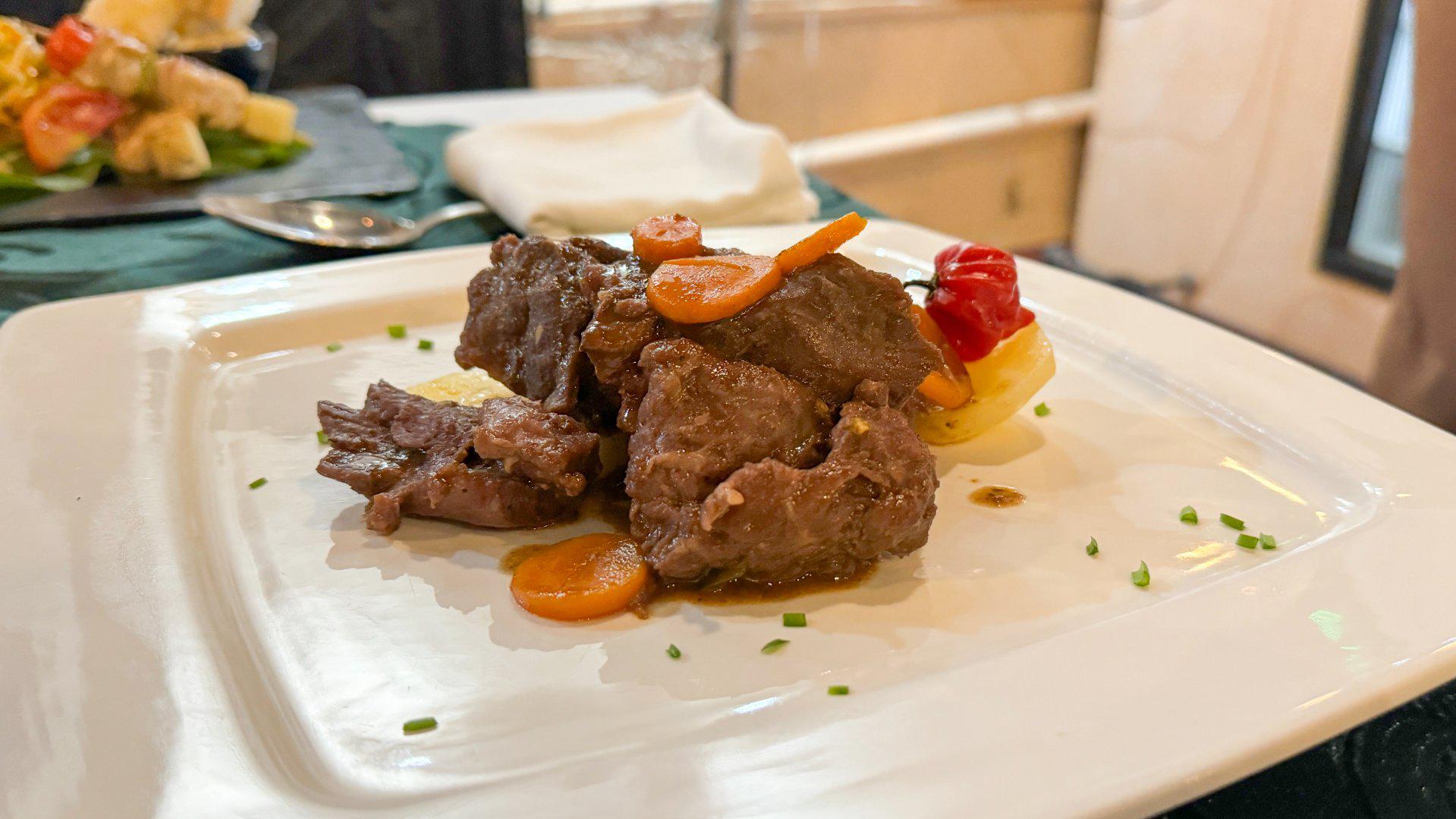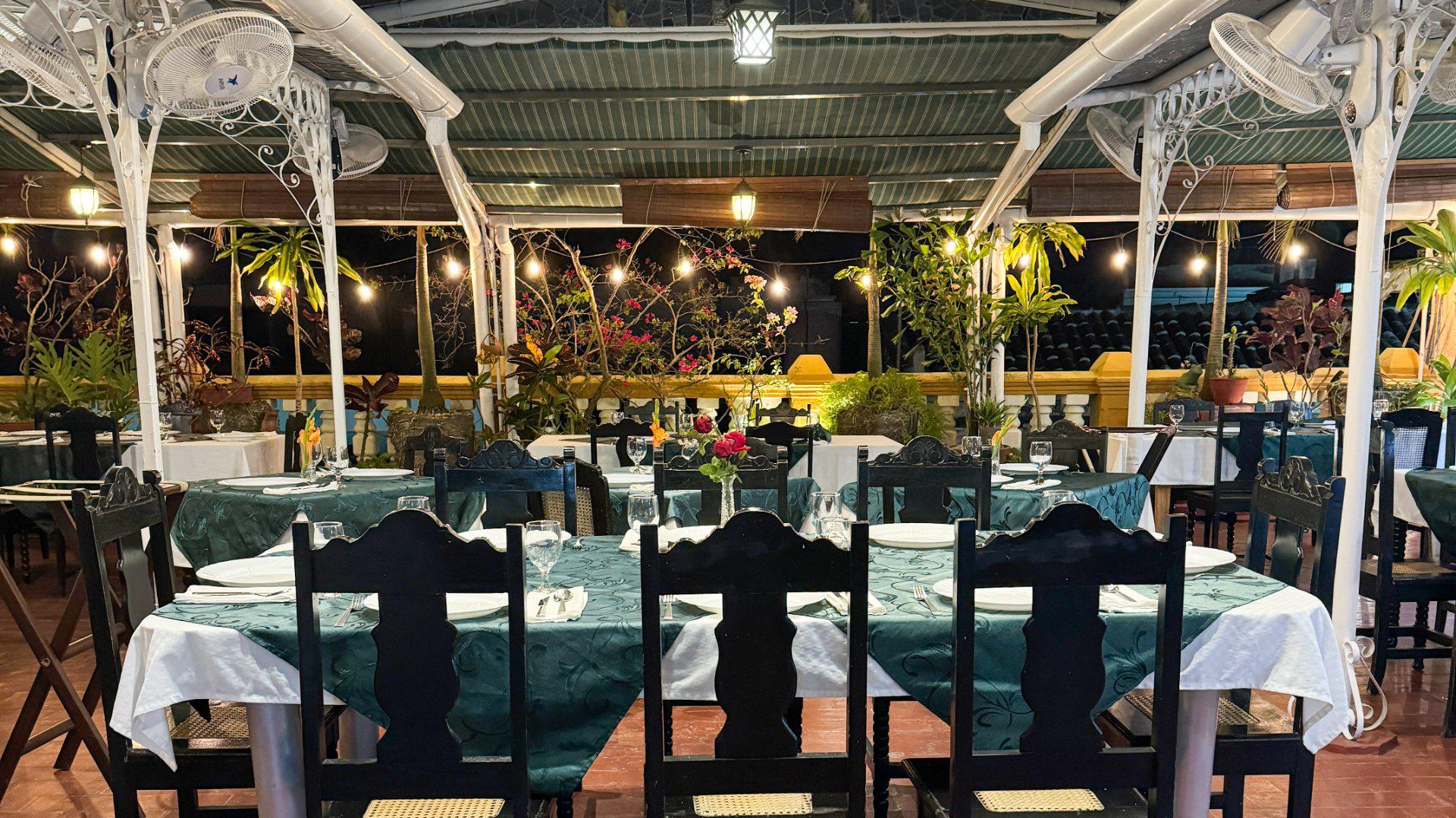 La carte présente une offre de plats cubains et internationaux, avec une attention à la présentation. Parmi les propositions, on trouve le « Pollo a la Carmen », le poulet selon Carmen, accompagné d’une sauce aigre-douce, ainsi que plusieurs plats à base d’agneau, reconnus pour leur texture. Le service adopte un style théâtral, rappelant les époques passées.