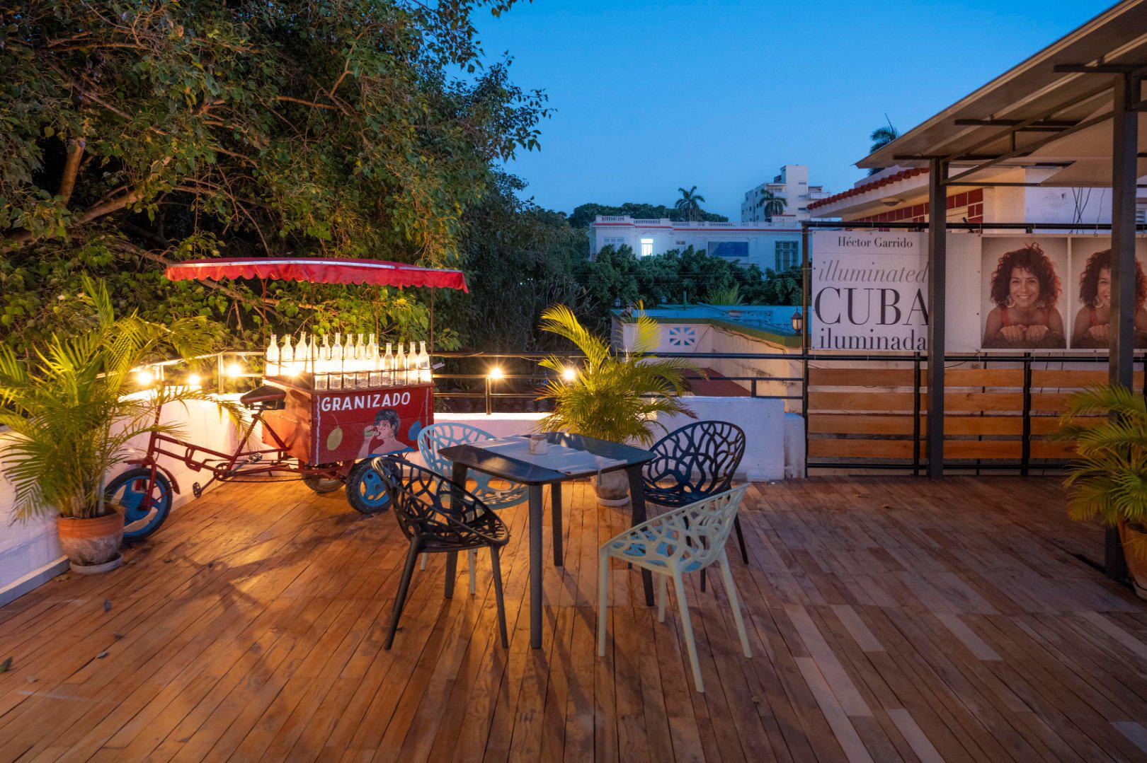 Les propriétaires, Laura de la Uz—actrice cubaine—et Héctor Garrido, photographe espagnol résidant à Cuba, ont conçu un hébergement centré sur l’art et la culture. Leur travail artistique fait partie de la décoration intérieure.