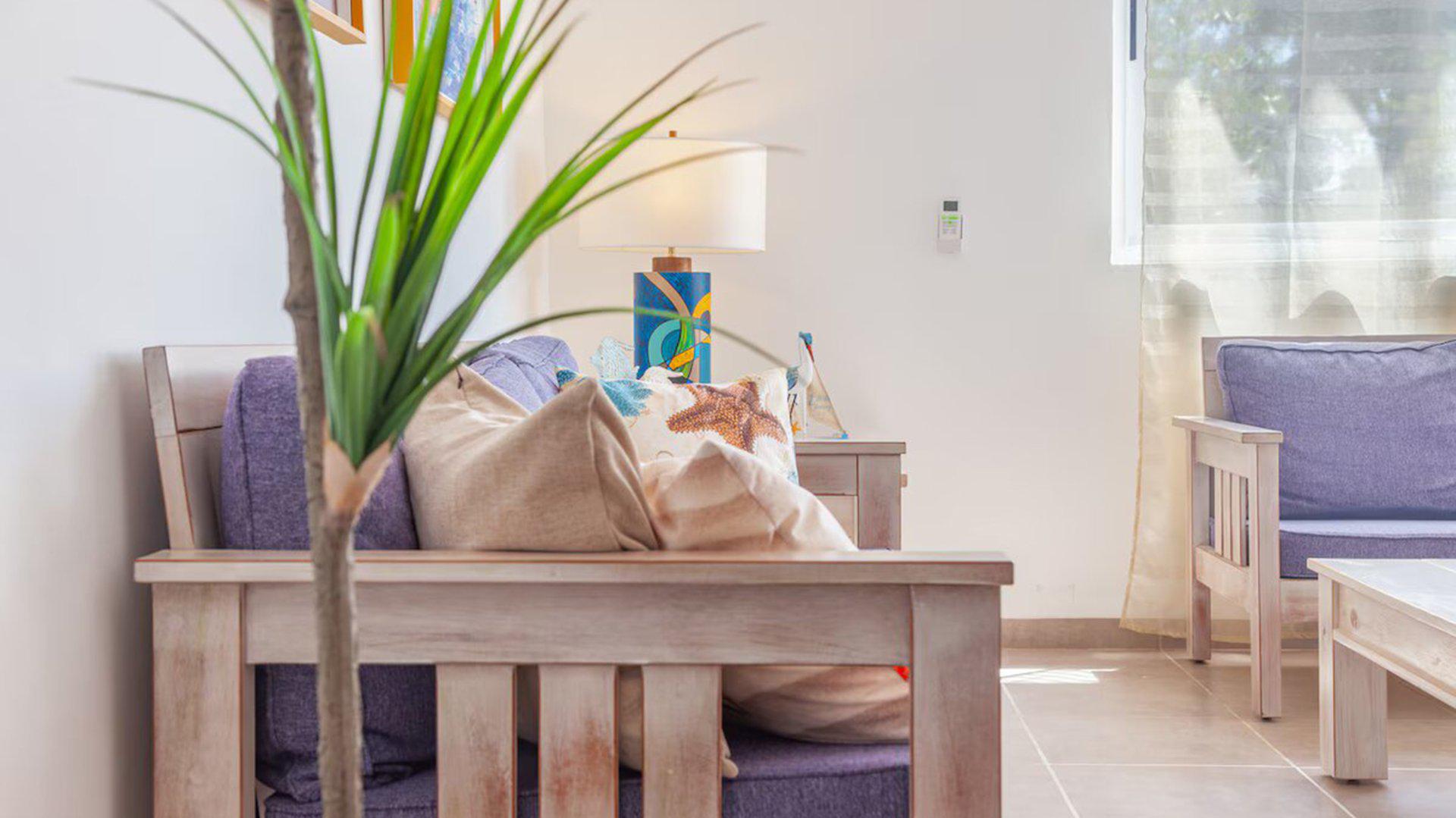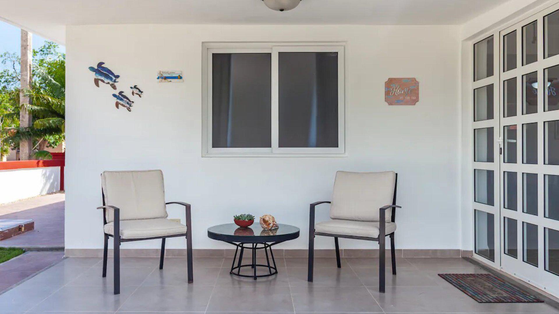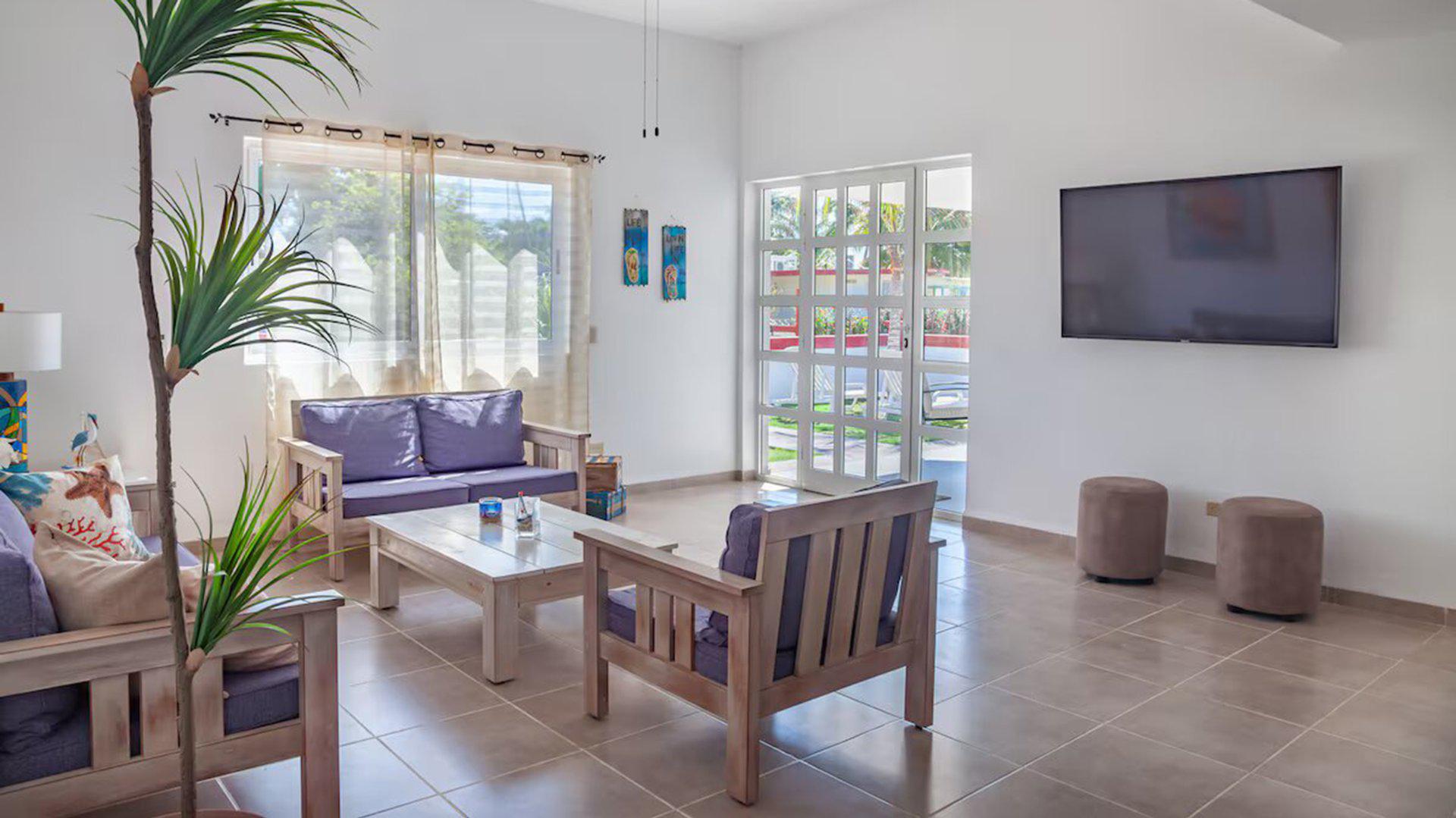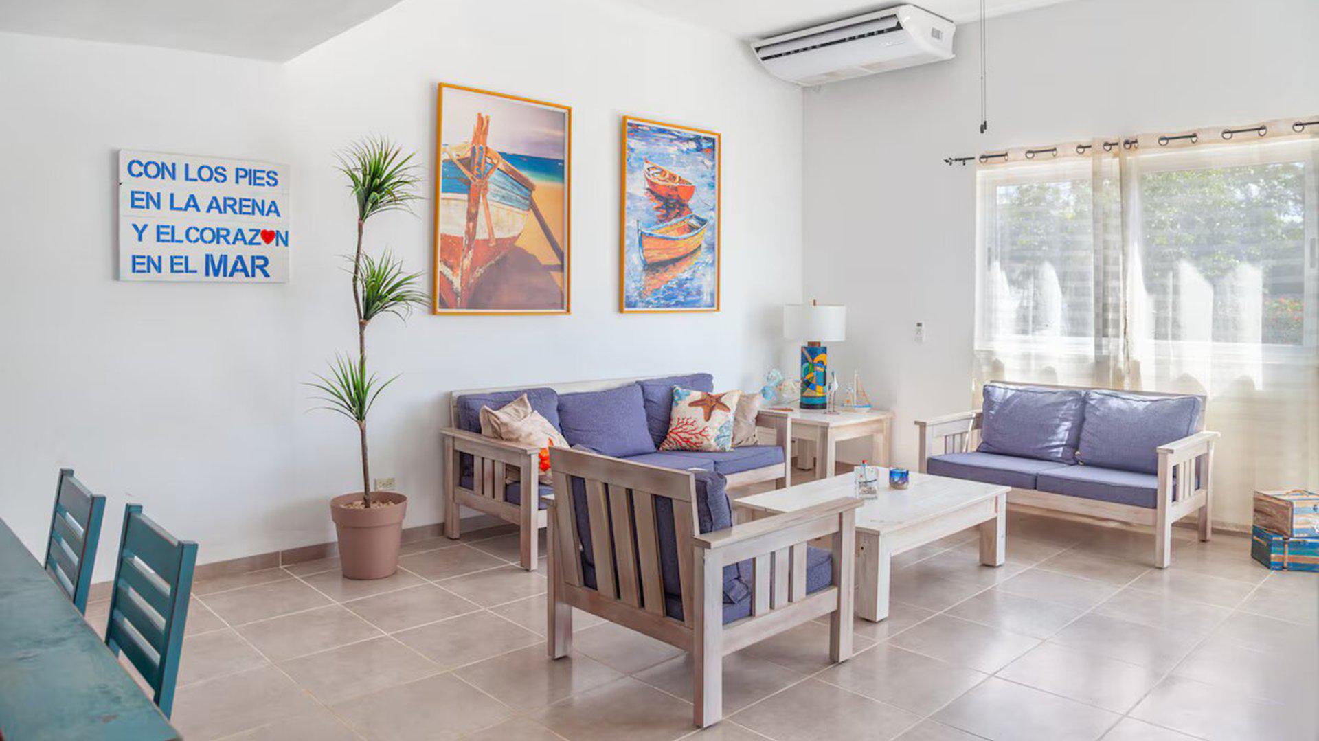 Construite il y a quelques années puis rénovée récemment, la propriété correspond au type d’habitation courant dans la région : une maison fonctionnelle, sans style architectural particulier ni recherche de luxe. Les espaces communs sont relativement spacieux et climatisés, ce qui apporte davantage de confort dans un climat chaud et humide. La décoration combine simplement des éléments d’inspiration caribéenne et rustique.