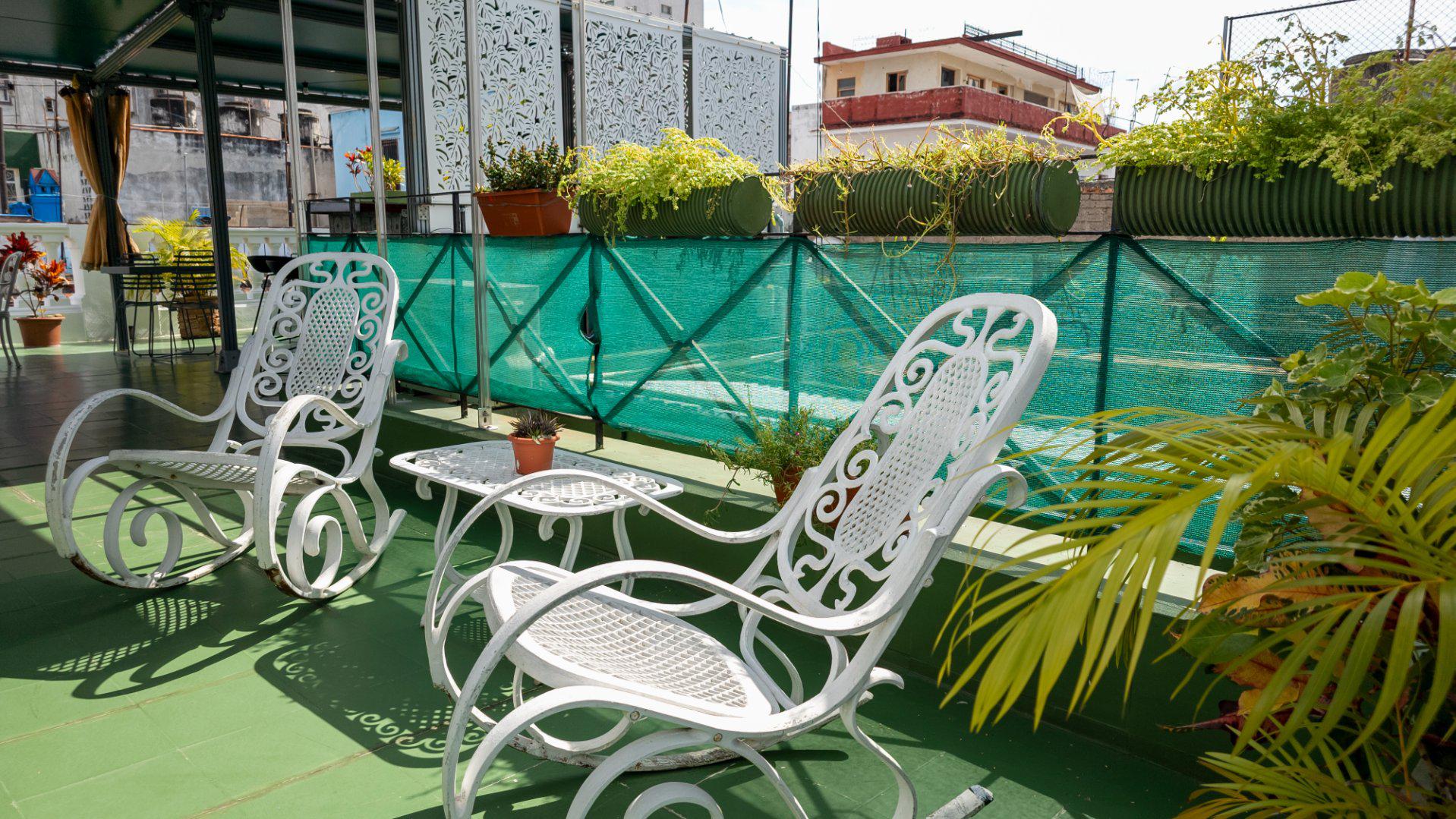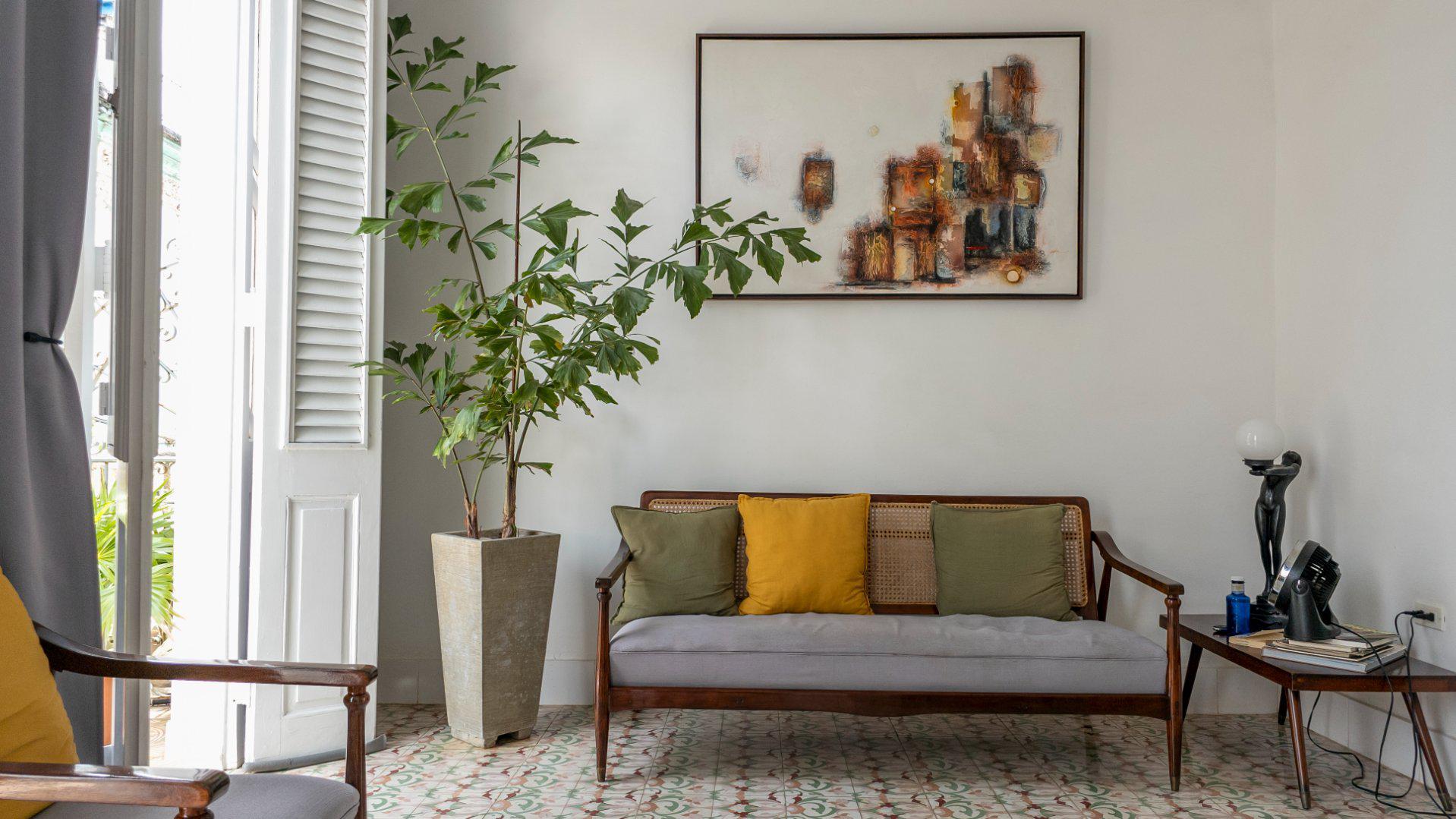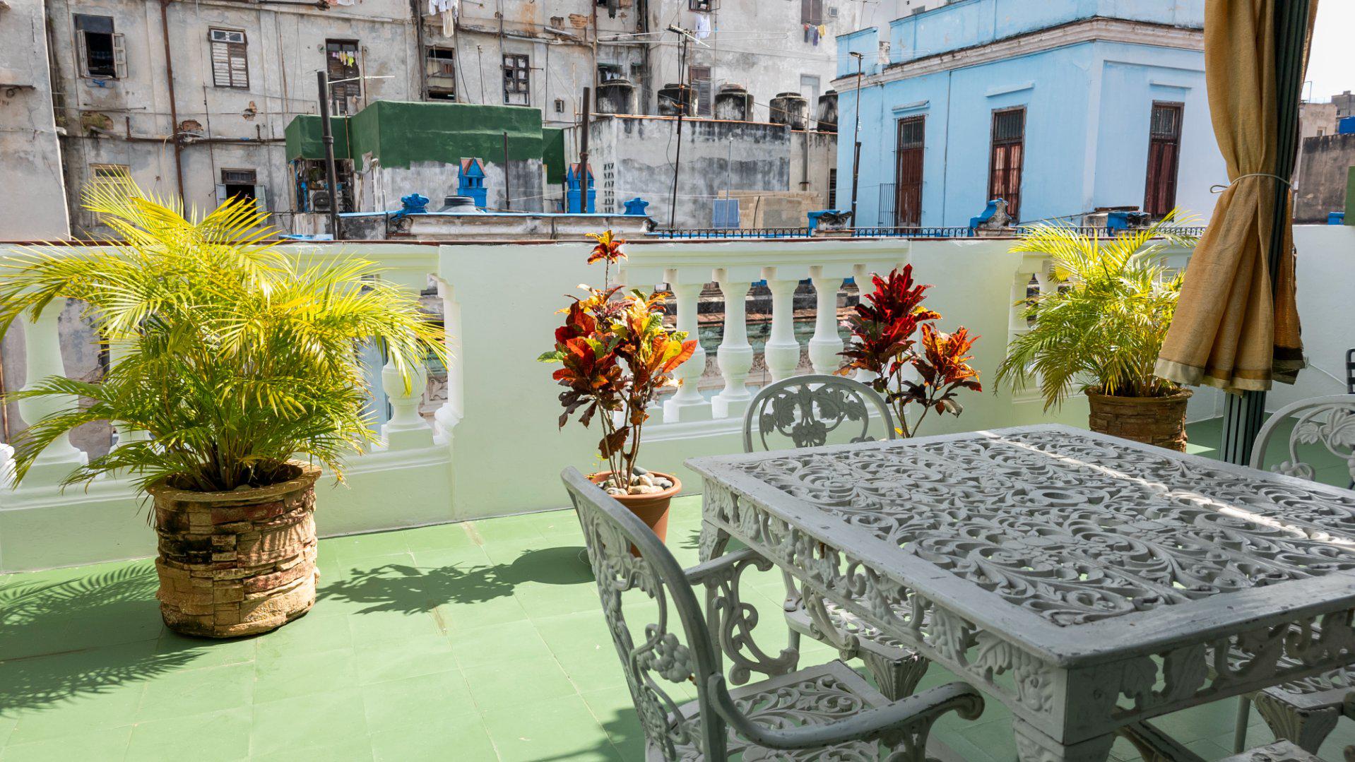 L’Hostal de Armas occupe le deuxième étage d’un immeuble construit en 1917, au cœur de la Vieille Havane, dans l’un de ses quartiers les plus vivants et accessibles. Restaurée entre 2016 et 2018, la maison a conservé l’âme architecturale de l’époque : hauts plafonds, vitraux au-dessus des portes, grandes fenêtres en bois et balcons aux balustrades en fer forgé qui donnent sur la rue. Cette structure d’origine, naturellement ventilée et inondée de lumière, confère au lieu une atmosphère authentique, fidèle au style résidentiel havanais du début du XXᵉ siècle.