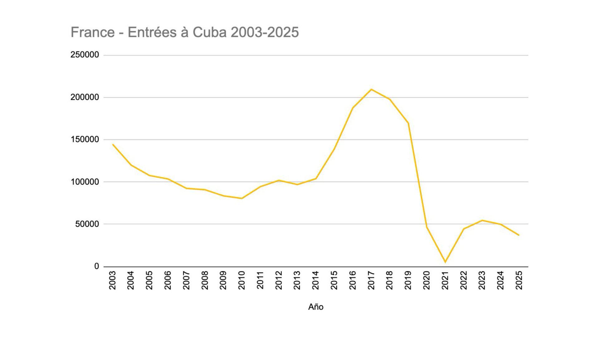 Une conclusion, parmi tant d’autres : Plus qu’un effondrement en 2025, Cuba à surtout atteint un pic de fréquentation en 2018, rompant totalement avec son évolution moyenne en terme de tourisme. C’est l’effet Obama. Stimulée par la visite du président américain, les cubains ont vécu ce que pourrait être une ouverture de Cuba, c'est-à-dire la levée de l’embargo, démontrant que le marché naturel touristique de Cuba est définitivement le marché nord-américain.