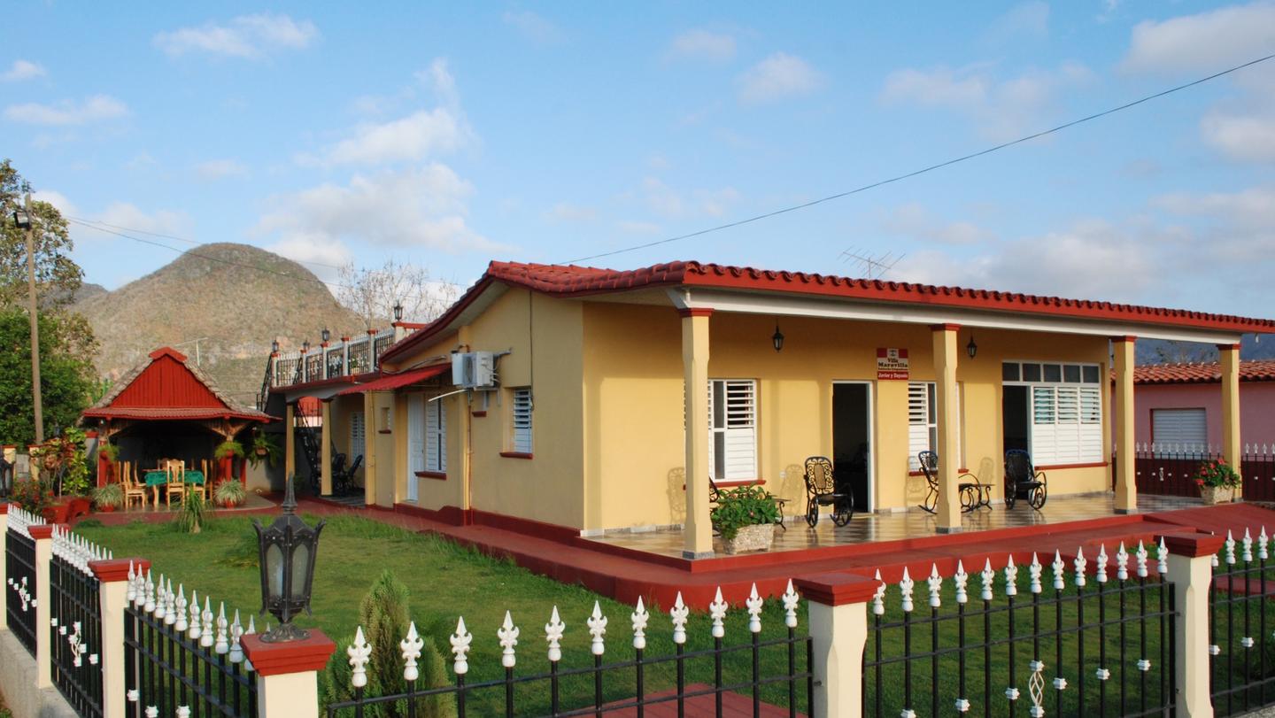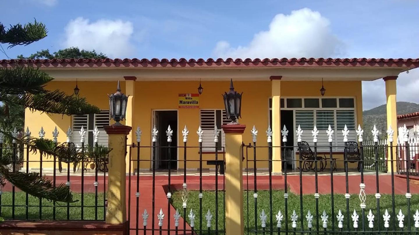 Villa Maravilla est située dans un quartier résidentiel calme, à quelques minutes du centre de Viñales, dans la province de Pinar del Río. La maison, de construction moderne et sans style architectural particulier, ressemble à de nombreuses habitations locales : un portail d’entrée avec colonnes, un jardin spacieux entouré d’une clôture et des espaces ouverts adaptés au climat tropical.